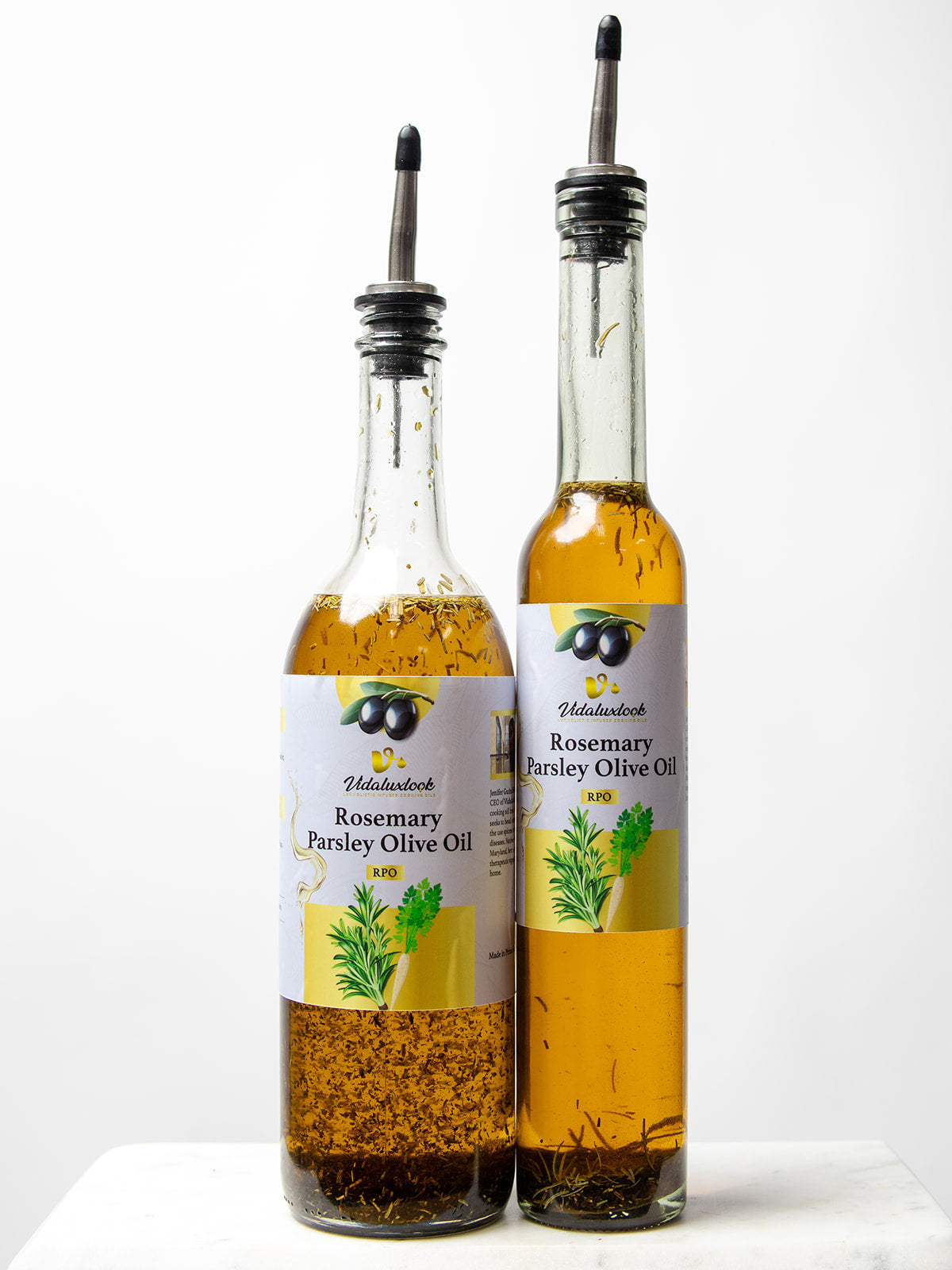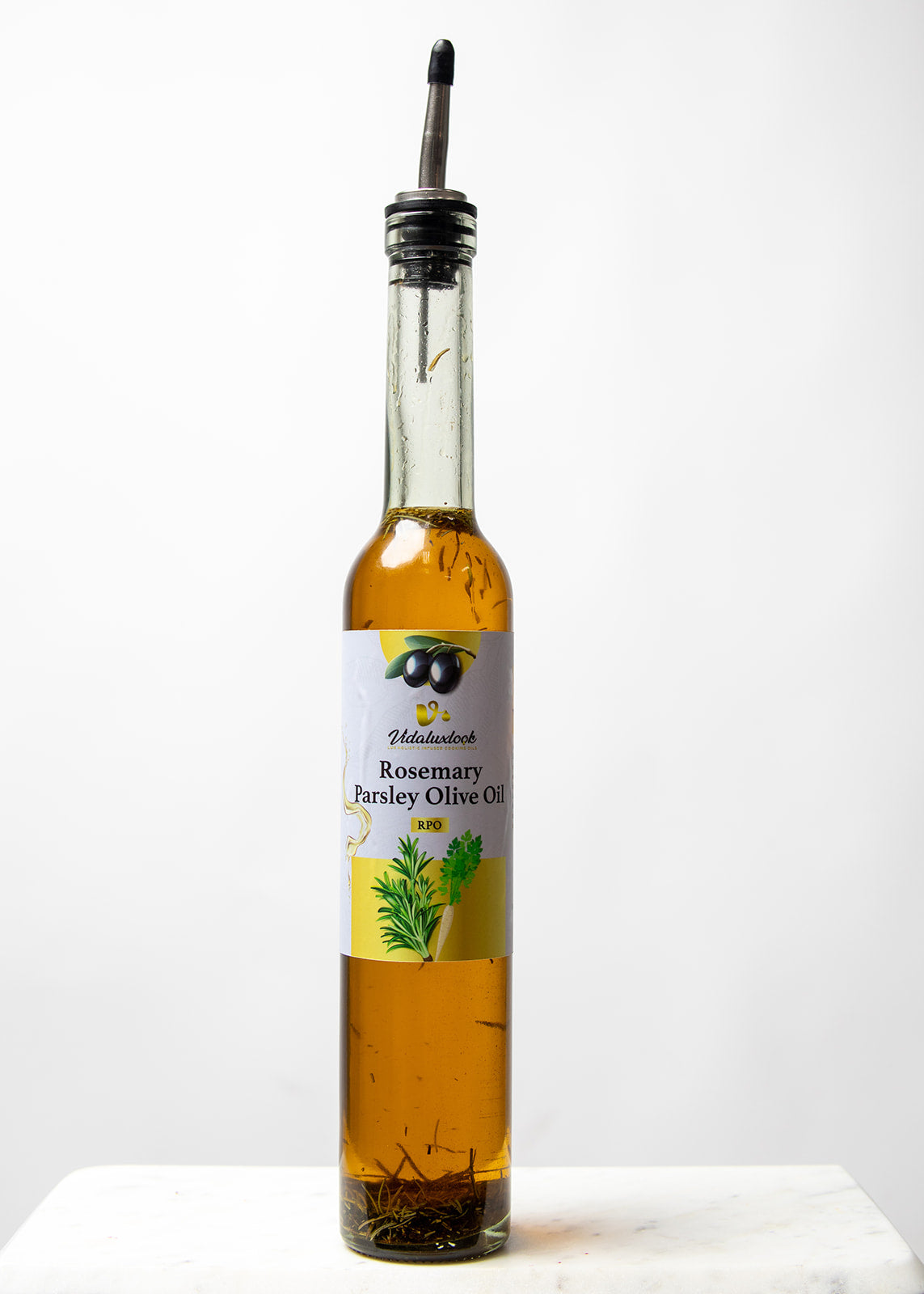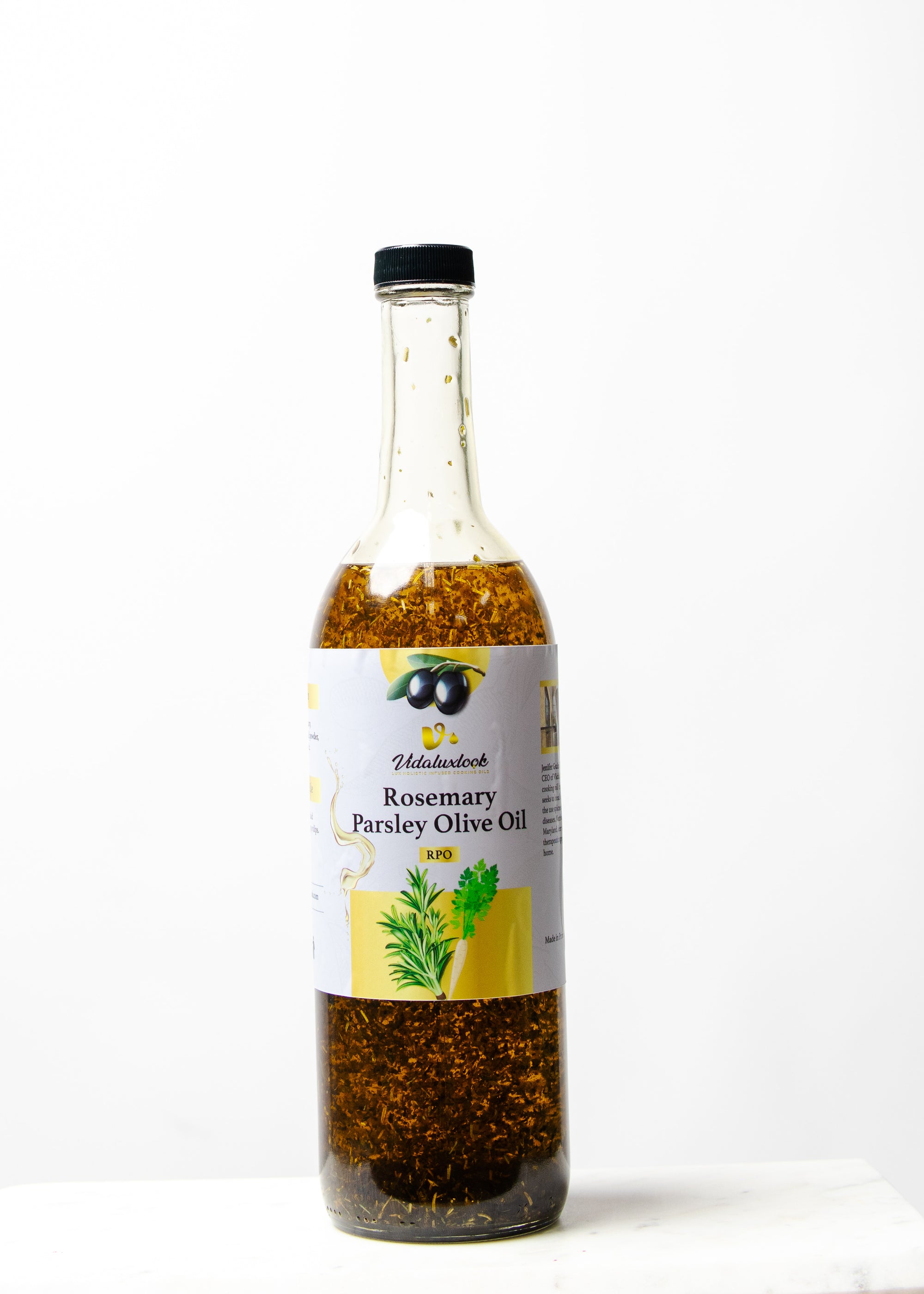RPO: Rosemary Parsley Olive Oil is a combination of olive oil, dried rosemary, minced garlic, parsley, and a variety of spices. This unique blend offers potential health benefits such as possibly promoting hair growth, may reduce stress, may aide in the treatment of uti's, and potentially help to manage other disorders.